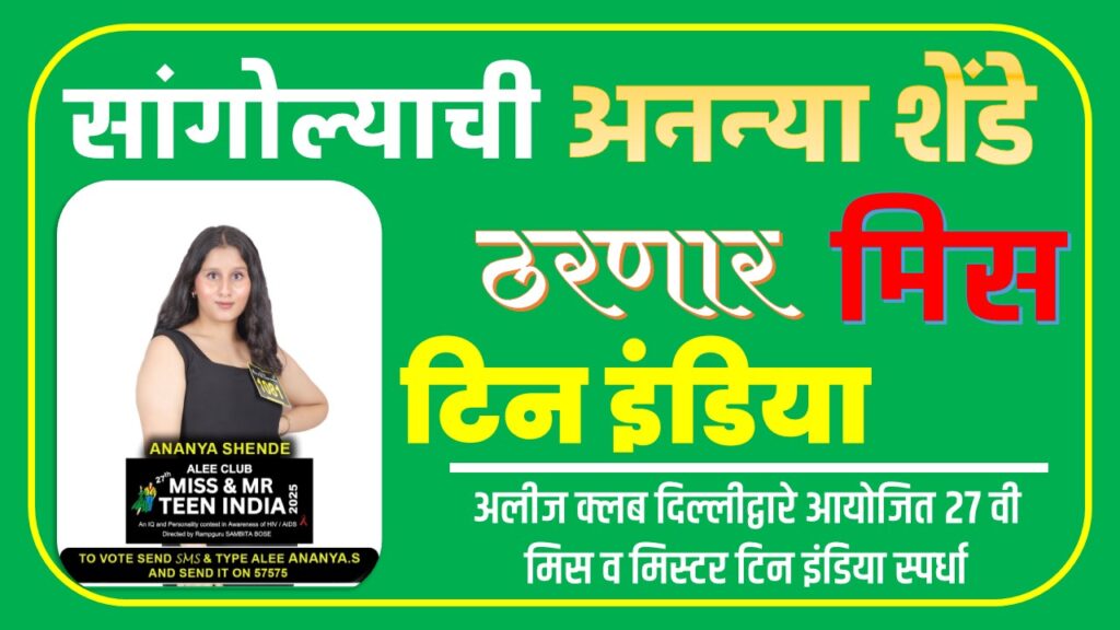 सांगोल्याची कन्या अनन्या हिला मिस इंडिया व्हीवर्स चॉईससाठी ALEE ANANYA.S हा मेसेज 57575 या नंबरला सेंड करून मतदान करा.